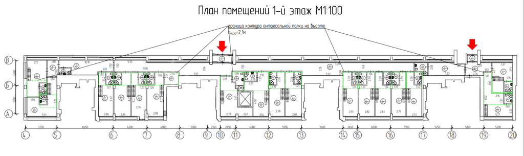 Площадь помещения - 573,6 м² (с учетом возведенных перегородок)