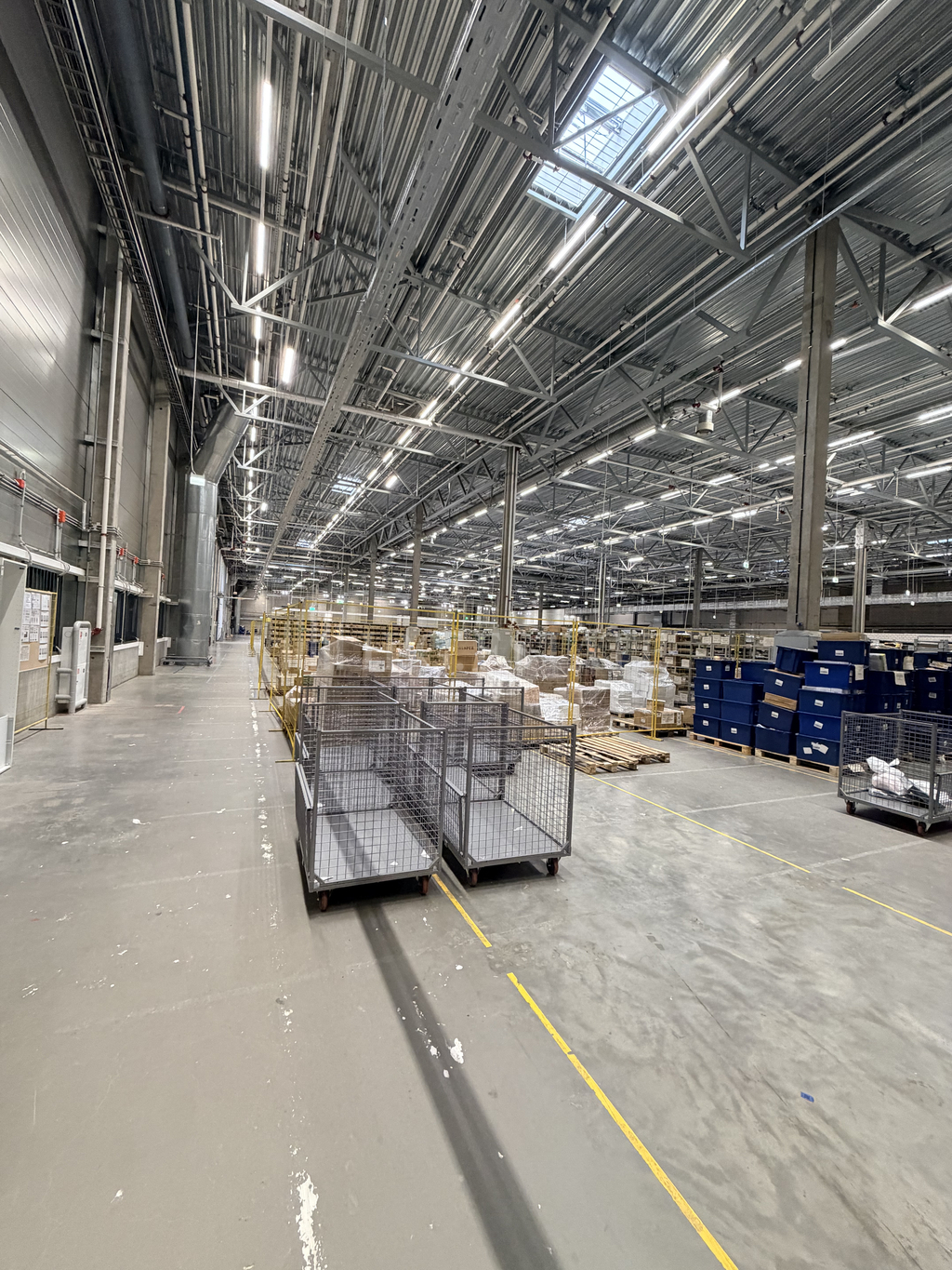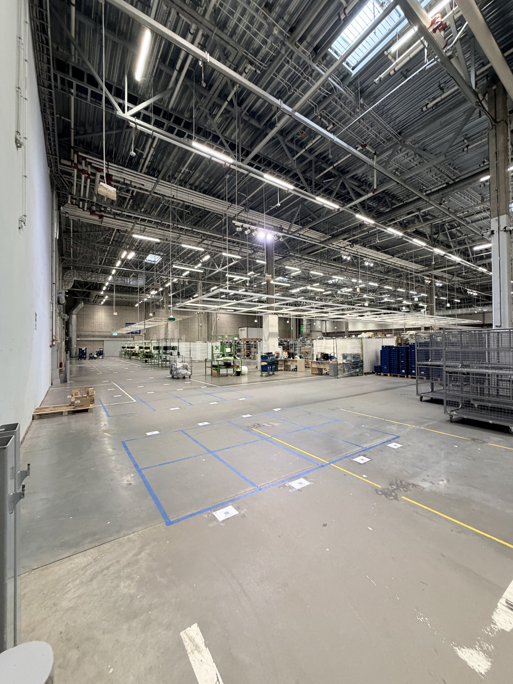 3 ворот, высота потолка 8.5 метров.