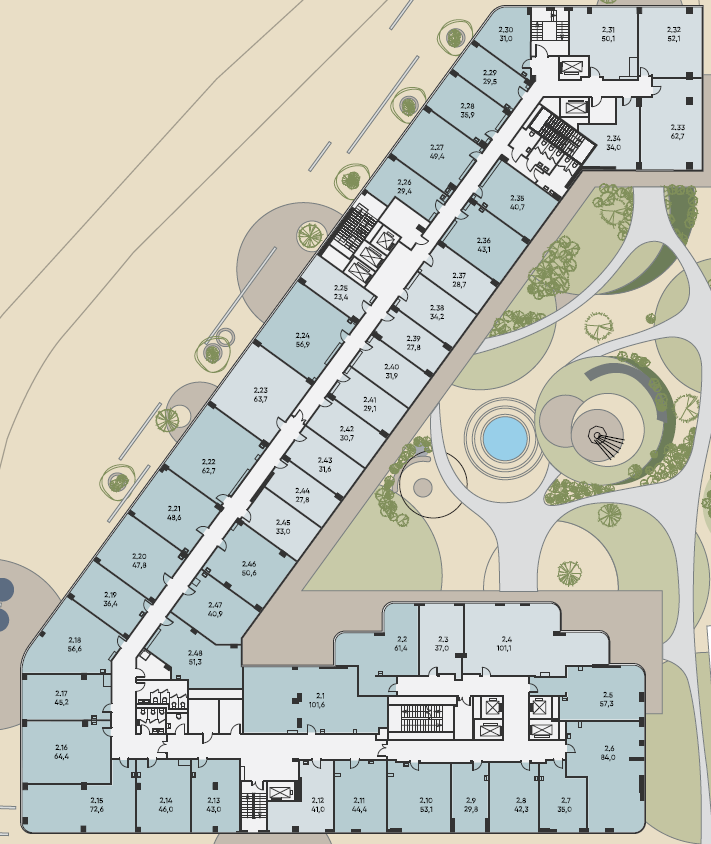• Площади блоков от 30 до 100 м²