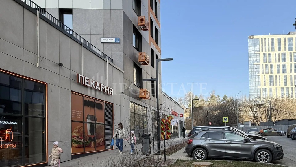 Помещение в стилобате напротив бизнес-центра и пешеходного перехода к нему, в прямой видимости от остановки, на выезде из района.