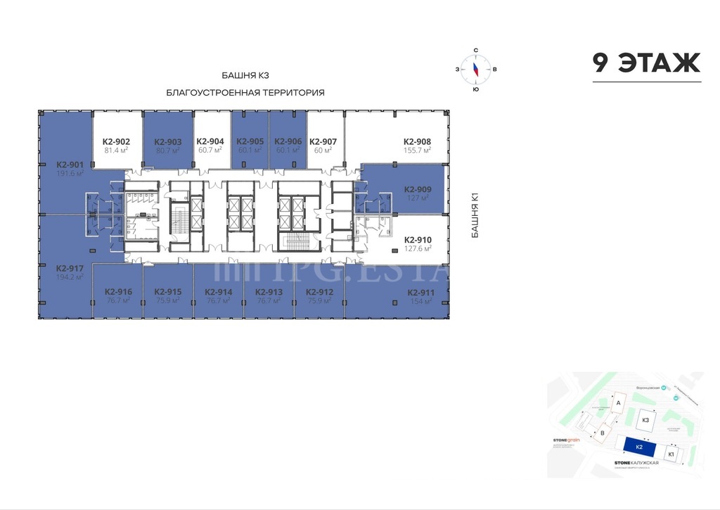 127 кв.м. в Бизнес-центр «СТОУН Калужская (Башня К2)», блок 127 кв. м