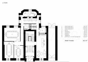 Здание отлично подходит для размещения офиса компании (до 139 рабочих мест) или коворкинга (до 186 рабочих мест).
