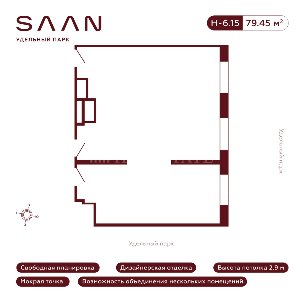 79.45 кв.м. в Апарт-комплекс SAAN Удельный Парк, блок 79.45 кв. м